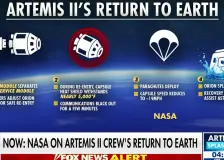 NASA astronaut explains feeling of re-entering and re-adjusting to Earth2:32 NASA astronaut and deputy head of flight ops Kjell Lindgren describes the planning and training that went into the Artemis II mission on ‘The Ingraham Angle.’ Standstill: IRGC reportedly halts traffic across Strait of Hormuz1:58 Fox News senior correspondent Mike Tobin has the latest on the Iranian conflict on 'Special Report.' Former ISS commander illustrates what it feels like to re-enter Earth's atmosphere1:58 Former NASA astronaut Michael Fossum explains how the Artemis II’s unique orbit will change its re-entry to Earth on ‘Special Report.’ NASA official: The heat shield is what we looked at the hardest after Artemis I23:44 NASA Associate Administrator Amit Kshatriya explains the significance of the heat shield in Artemis II’s splashdown on ‘The Will Cain Show.’ Food delivery drones launch in NJ23:10 FOX Business correspondent Madison Alworth reports on drone food delivery services launching in New Jersey on ‘America Reports.’ NASA press secretary: Safety is our utmost priority22:02 NASA senior advisor and press secretary Bethany Stevens has the latest on the Artemis II crew's upcoming splash down on 'The Story.' 'Carefully choreographed maneuver': How the Artemis II crew will return to Earth22:02 Dr. Lori Glaze, head of NASA's Artemis program, opens up about the crew's trip back to Earth on 'America Reports.' |